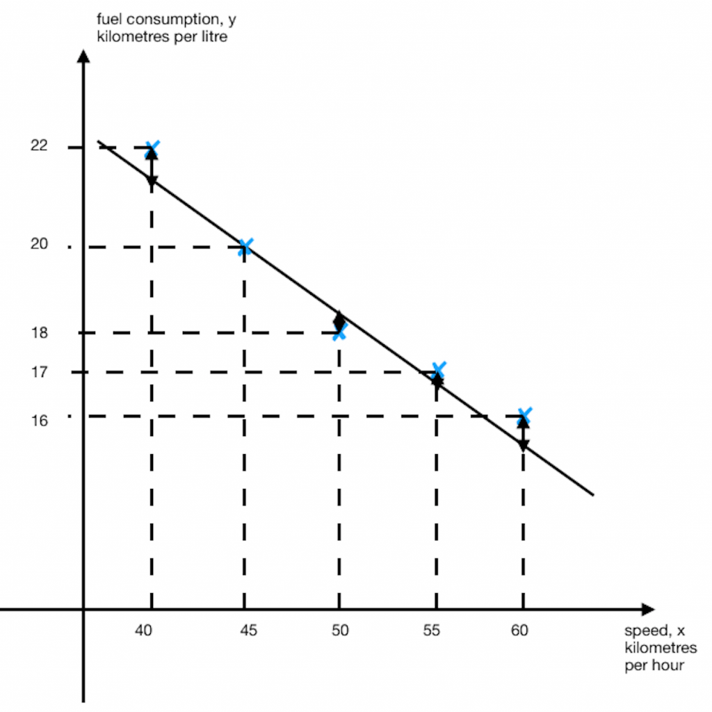 Note that the coordinates (45, 20) should be on the line. Thus no residuals.